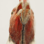 Vanmechelen found that each successive generation of hybrids was more resilient than its purer-bred parents. The chickens lived longer, were less susceptible to disease, and exhibited less aggressive behavior. Also, less unexpectedly, the morphological and phenotypical characteristics were blurred by selective breeding. The ultimate result of many generations of cross-breeding is a truly Cosmopolitan Chicken, carrying the genes of all the world’s chicken breeds. The starting point for all these different breeds once was the Red Jungle Fowl – the original chicken. Its many descendant breeds are all man-made end-points, sometimes literally so, in the sense that they are infertile. Vanmechelen wants to end all these breeds by blending them back into a new starting point, providing a chicken-breeding example of the principle of creative destruction. But the CCP does not aim to reconstitute the proto-chicken. It does not want to return to the past. On the contrary, it symbolises the future. The CCP is the starting point of a new form of evolution that will never end, a perpetuum mobile of genetic diversification and recombination. Vanmechelen’s oeuvre is as diverse and as hybrid as the Cosmopolitan Chicken itself: it’s a unique mix of painting, drawing, photography, video, installations and wooden sculptures, whose unifying theme is the chicken and the egg. But, as mentioned before: nothing is what it seems. The core of the project is neither chicken nor egg, but crossbreeding and the diversity that comes from it.