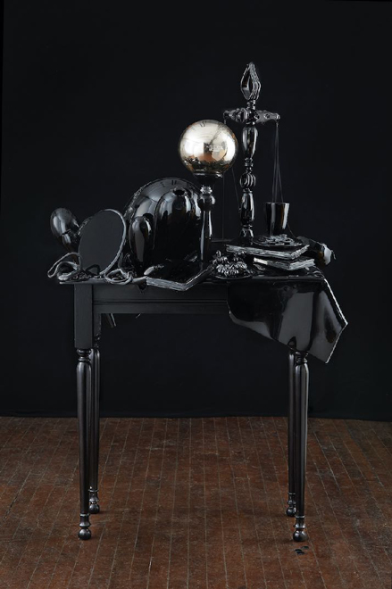 The work generates from the Still Life genre, symbolically representing the splendor and excess of the Anthropocene and the stratigraphic layer humanity will leave on earth. Assemblages of inanimate objects and domestic interiors, inspired by private spaces and public collections, propose portraits of individuals, institutions, and societies. The collision of sacred and profane artifacts with aspects of the natural world focuses attention on the evolving set of beliefs stemming from the narrative power of objects. Referencing both tangible and digital archives further unravels socially constructed hierarchies as the installations invite the viewers to step into uncanny webs of association…