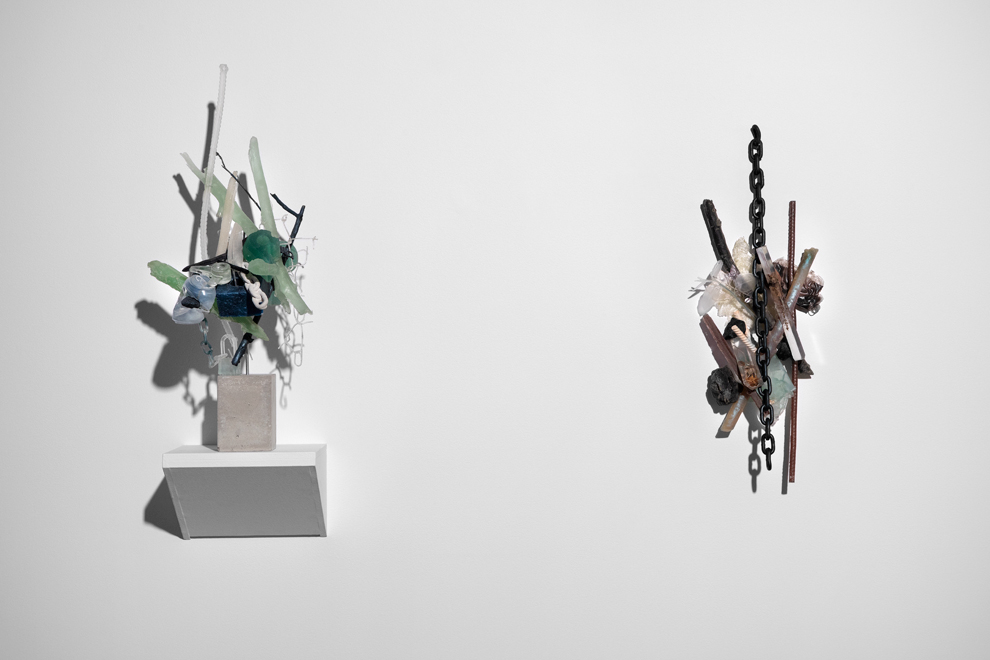 Henry embeds sticks, chains, rocks and cigarette packets within cement to become their compositional elements – leaves, rebar, cans and cables are cast out of resin and bronze to be assembled into sculptures – found paper and cardboard is collaged together to create the ground for landscape drawings. In the current series of sculptures Henry casts frail plants and objects out of resin. The likeness of each impermanent leaf is forever preserved by the toxic material complicit in the destruction of the natural world. The resin objects are combined into assemblages and relief sculptures referencing the collections of flora and detritus that amass in empty lots. He is interested in depicting the contradictions we face as an ecologically aware society functioning within a consumerist system. The mediums he selects are chosen for their ability to highlight the contradictions we face today.