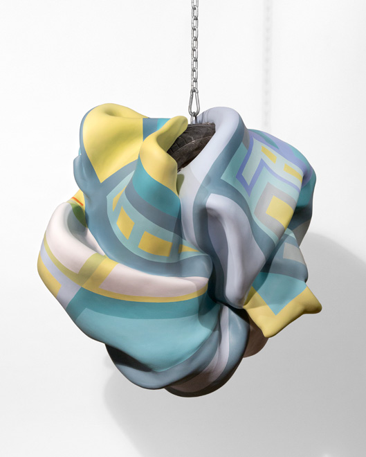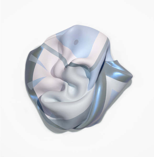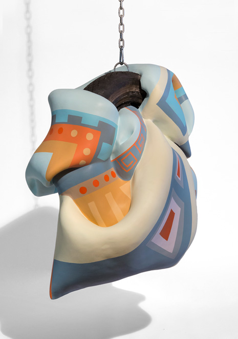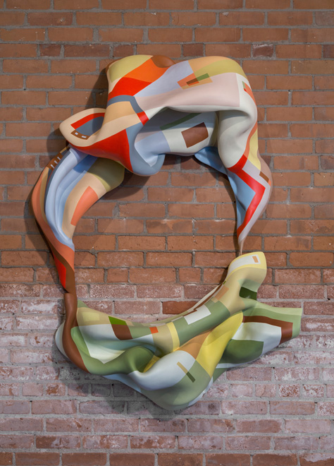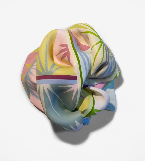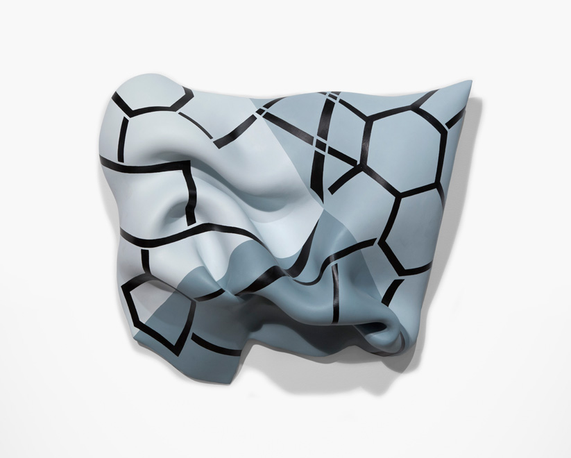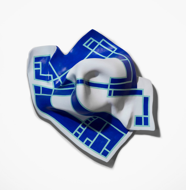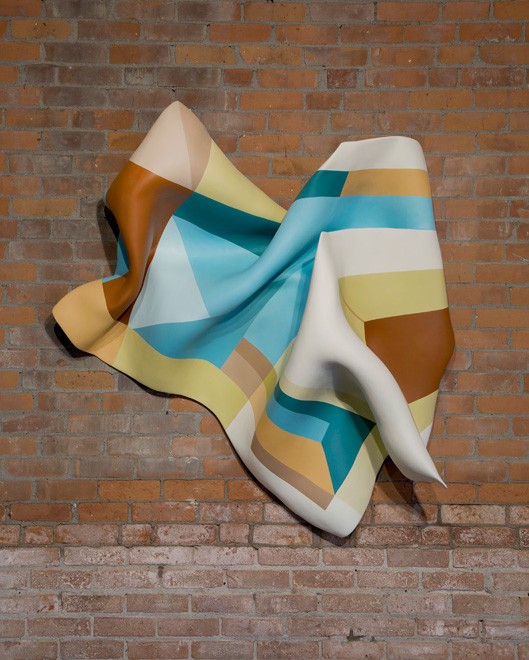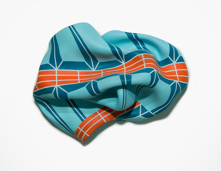Working with a labor-intensive process that merges sculpture with painting, Marela Zacarias fabricates forms out of wire screening attached to wooden supports or found objects to which she applies layers of plaster to create undulating forms. Through sanding, polishing, and painting, she creates sculptures with the quality of fabric, filled with movement and expressive quality. She then paints the sculptures with original patterns and geometric abstract shapes that are inspired by her research.  Her work is characterized by an interest in site specificity, socially committed history and current events. Marela Zacarias has a solo show opening on September 6th, 2018 at Sapar Contemporary in NY and a solo show at Wasserman Projects in Detroit opening on October 5th, 2018. She is currently working on 5 monumental sculptures for the new state-of-the-art international arrivals facility at the Seattle-Tacoma International Airport.