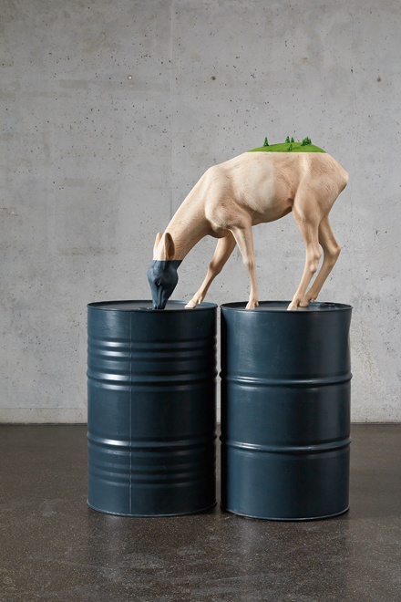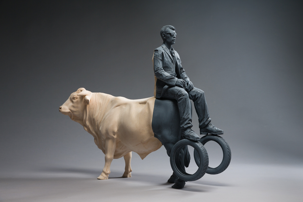 Since 2008 he has applied large areas of solid colour to his sculptures in an almost random fashion. For him, colour is the most important part of his work. Never a narrative feature, colour is used to trigger a change in perception. Applied as if casually with no connection to the sculpted volume, colour sets up violent contrasts designed to perturb the viewer’s contemplation.
